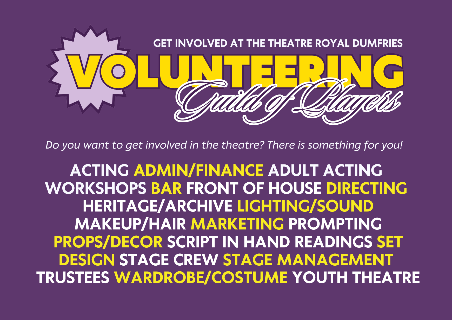 If you are interested in finding out more about volunteering at the Theatre Royal Dumfries, please fill out our expression of interest form below.
